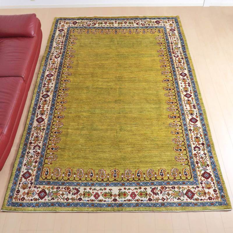 イラン製 ゾランヴァリ ギャッベ リビング アクセントラグサイズ 168×102cm ウール100% 天然素材 手織り おしゃれ モダン 北欧 ラグ 絨毯 マット ラグマット カーペット ギャベ 床暖房対応 ホットカーペット対応 黄色 イエロー (品番:ZM-1557)