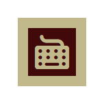 【中古】深い紺地に巻物や櫛などが可愛い着物はぎれ