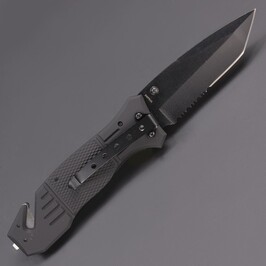コンボエッジのドロップポイントナイフの他、ラインカッターとウインドウブレーカーを備えており運転中の事故でドアが開かない、シートベルトが外れないなどの緊急を要する場面で活躍してくれます。
