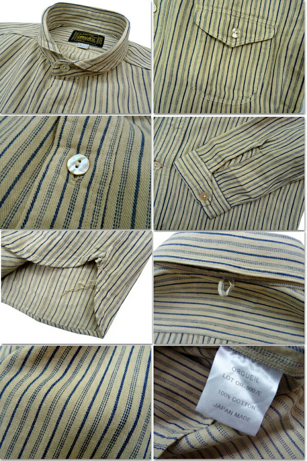 ▲商品のレビュー(感想)を書くだけ▲オルゲイユ 長袖 ストライプ シャツ クラシック クラシカルな生地感でオールドな雰囲気! OR-5007E ショールカラーシャツ ストライプ >>町の人から愛されている小さな小さな仕立屋 顔なじみのお客さんからオーダーを受けエルムウッズはその要望に答えるべく、お客さんの顔を思い浮かべ、パターンの作成から始めるのだった… 20世紀初頭の世界観を漂わせ、エルムウッズによってデザインされたあたたかみのある作品オルゲイユというブランドの物語 ごゆっくりご覧下さい。
