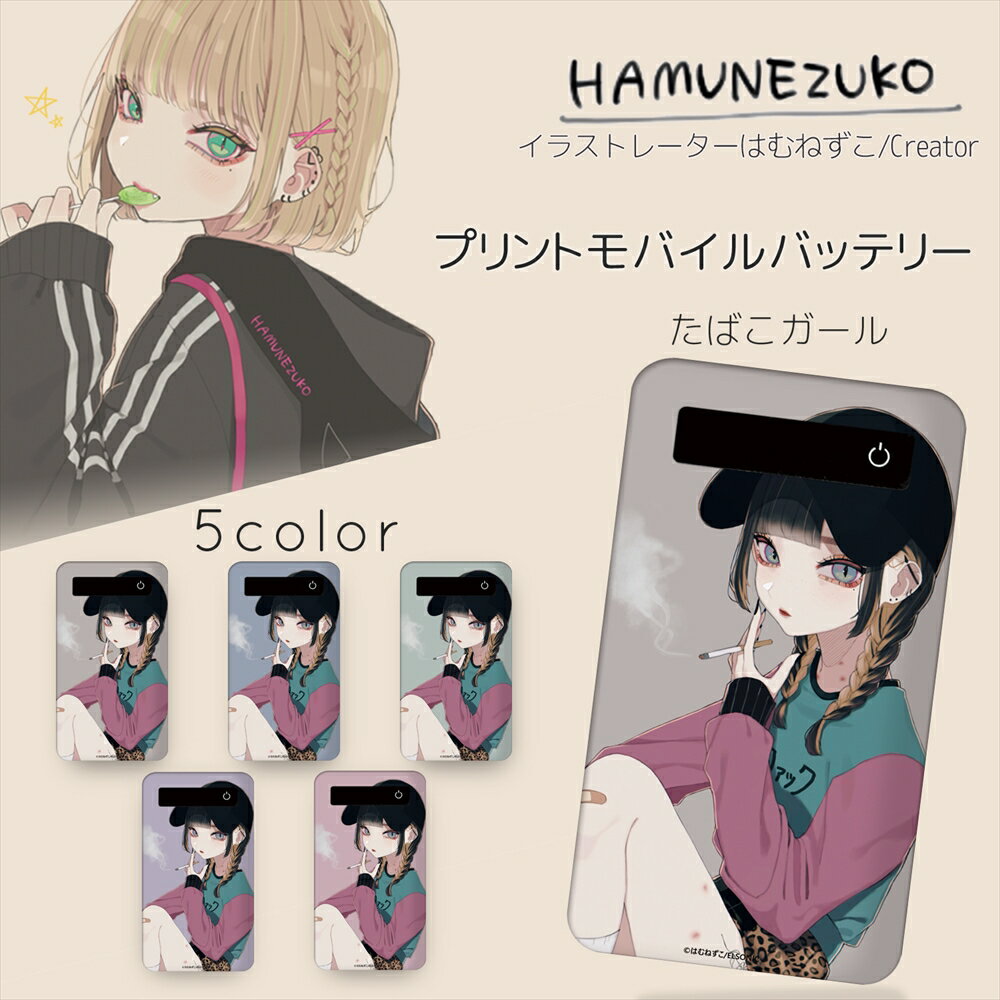 はむねずこ プリントバッテリー 4000mAh / たばこガール プリント 人気 iPhoneSE 第2世代 スマホ 充電器 薄型 GALAXY Xperia ギャラクシー AQUOS ARROWS キャラクター