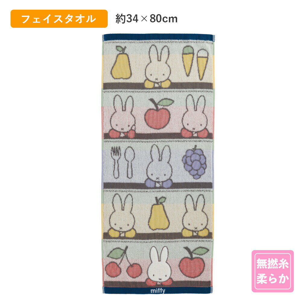 ミッフィー フェイスタオル フルーツとミッフィー miffy 無撚糸 パイルジャガード サガラ刺繍 お風呂 プール 海水浴 キャラクター ギフト プレゼント メール便可